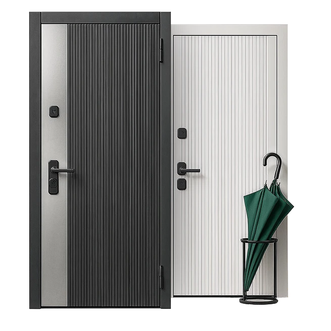 Утепленные модели с минеральным наполнителем снижают теплопотери коттеджа и расходы на отопление, герметичный контур блокирует проникновение холодного воздуха и влаги. Парадные конструкции с элементами художественной ковки формируют представительный облик особняка, подчеркивая статус владельца. Двухстворчатые варианты подходят для широких проемов до 2,5 метров, арочные формы реализуют нестандартные архитектурные проекты. Антикоррозийная обработка металлических элементов гарантирует долговечность при круглогодичной эксплуатации на улице, а замковые системы 4-го класса защиты обеспечивают максимальную взломостойкость.